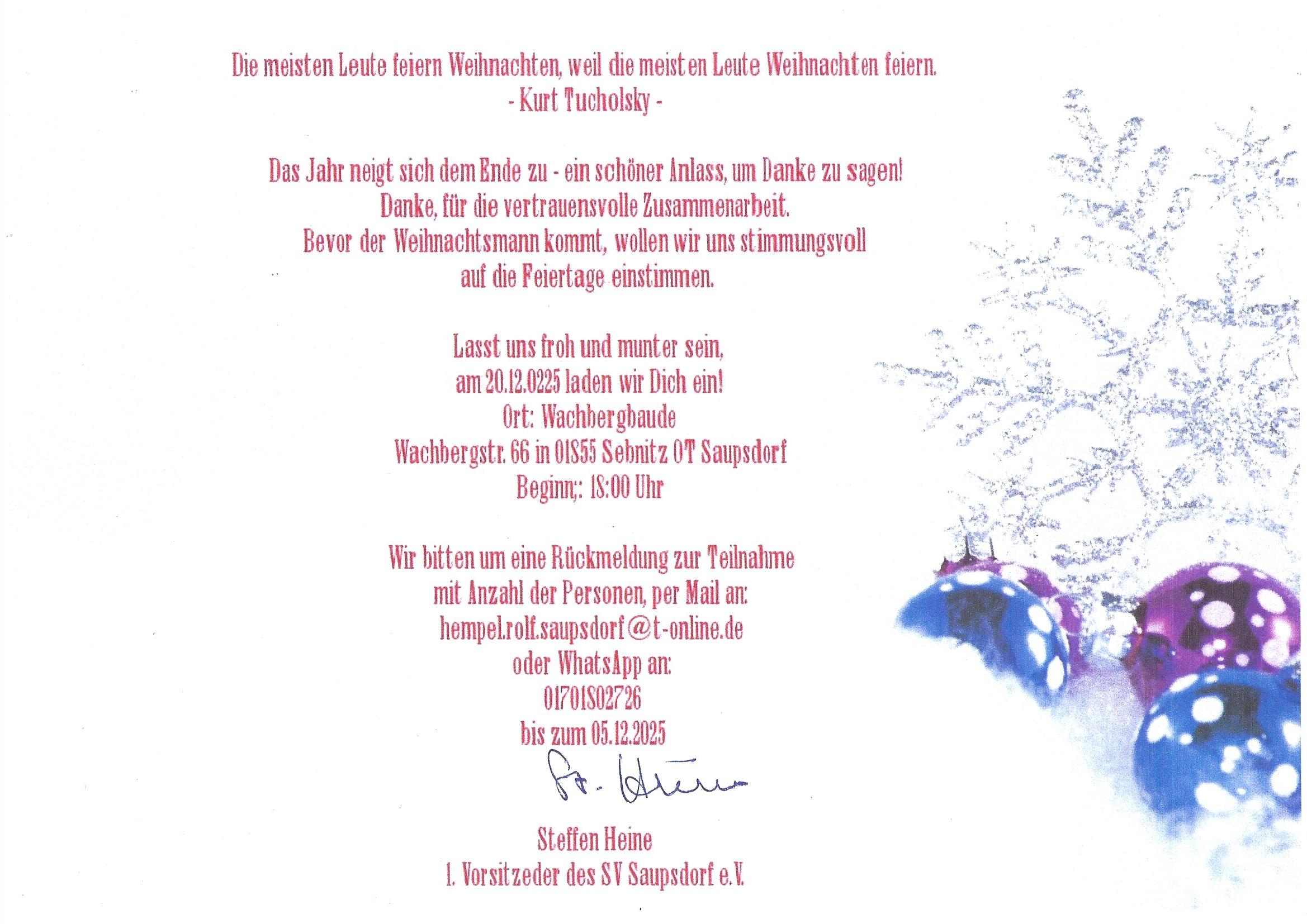 per Mail an: info@sv-saupsdorf.de